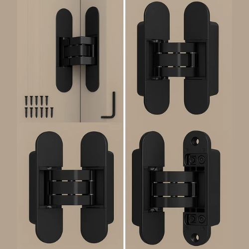 Modern hinged door option using concealed 3D hidden hinges for a perfectly seamless, contemporary appearance.